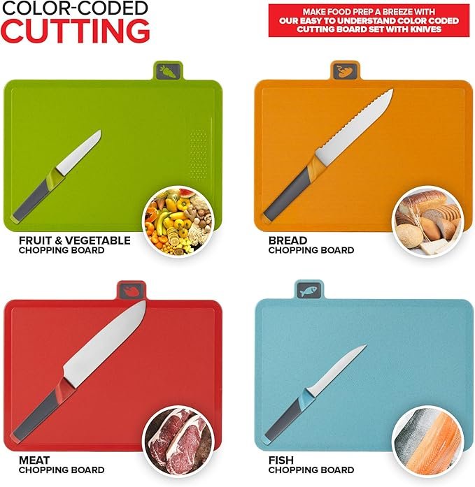 Modern Innovations Smart Cutting Boards and Knife Set, Self Cleaning Cutting Board & Knives Holder, Color Coded Cutting Board Set With Knives, All-In-One Cleaning Knife and Cutting Board Set