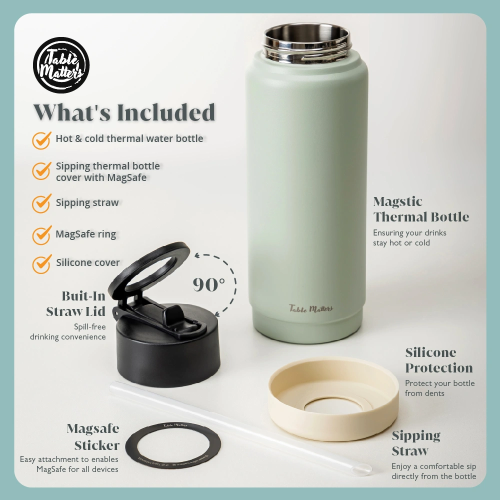 MAGSTIC – 24oz/700ml iPhone Magsafe Compatible Thermal Water Bottle with Sipping Straw Collection