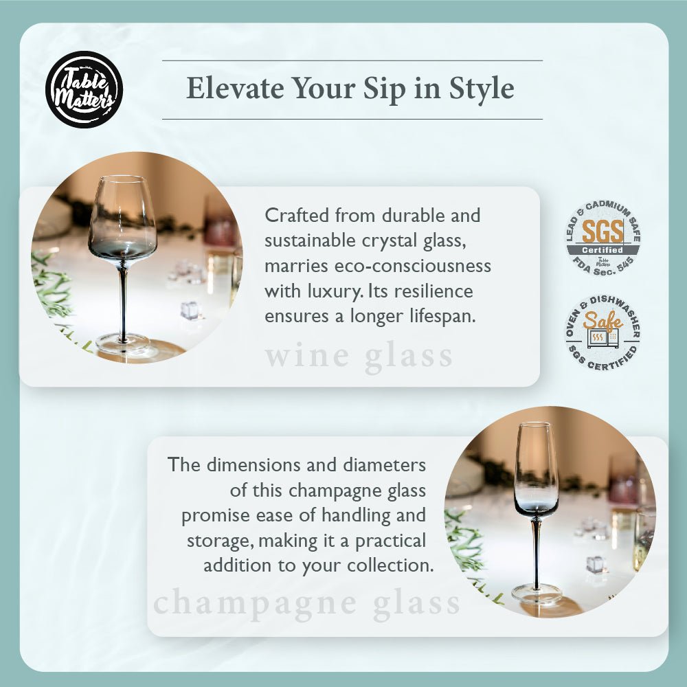 Introducing the Nero Gradient Collection from Table Matters. a harmonious blend of sophistication and functionality that redefines the essence of dining. Meticulously crafted from the finest crystal glass. this collection is a beacon of elegance and resilience. Using crystal glass brings a touch of luxury to your Table and reflects a commitment to sustainable dining practices.