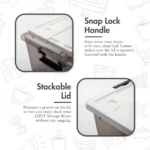 - Snap-lock side handles firmly secure the tightness of the storage box.