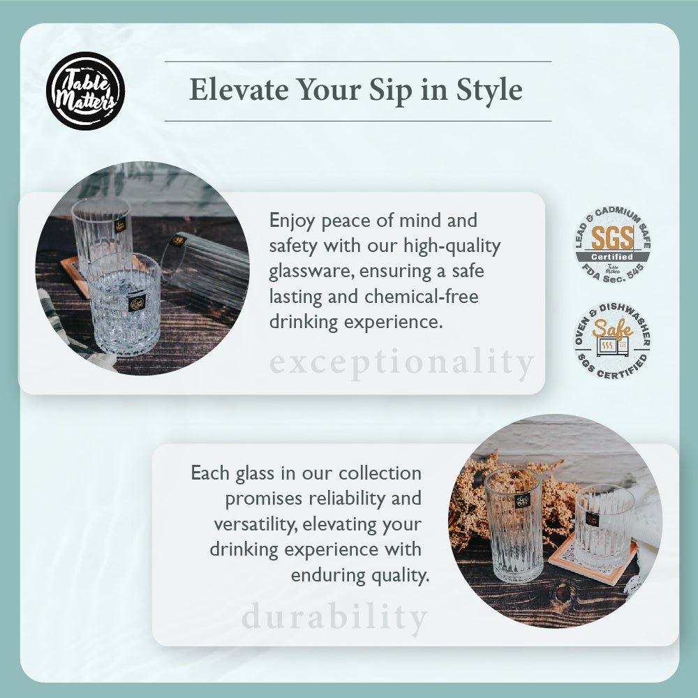 Unlock various benefits with the TAIKYU Crystal Whiskey Glass that seamlessly blends style and practicality. Drenched in elegance and crafted with unyielding quality standards. each glass promises a luxurious touch to your table settings. ensuring that every occasion is sophisticated. The lead and cadmium-free promise prioritises your well-being. allowing you to indulge in every sip with an assurance of safety and exquisite taste. Opt for Table Matters and embrace an unparalleled amalgamation of timeless charm and uncompromising quality. ensuring every dining experience is a remarkable indulgence.